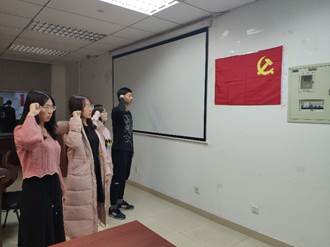最后,党支部书记王楠带领四位预备党员在党旗下庄重宣誓。至此,本次支部大会圆满结束。