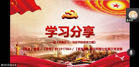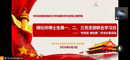 2020年6月3日下午,304永利集团精仪所博士生第一、二、三党支部线上开展“学党史读经典”好书分享活动,活动由精仪所博士生第三党支部书记范时秒同志主持,全体党员同志及部分入党积极分子参加了此次活动。