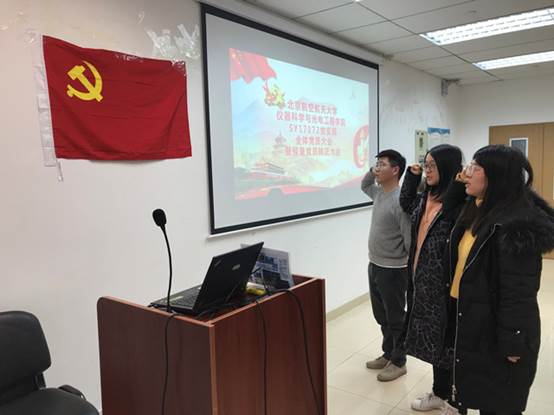 会议第四项,无记名投票表决。全体正式党员一致同意由彭松同志作为监票人、由周咏平同志作为计票人进行投票。投票整理完毕后,熊凯同志宣读投票结果和决议,支部全体正式党员一致同意三名预备党员的转正申请,决定接收闫泽同志、许涵同志、王韵涵同志转为中国共产党正式党员。宣读决议后,三位转正党员面向党旗宣誓,表示自己将继续保持热情,不忘初心,牢记使命。