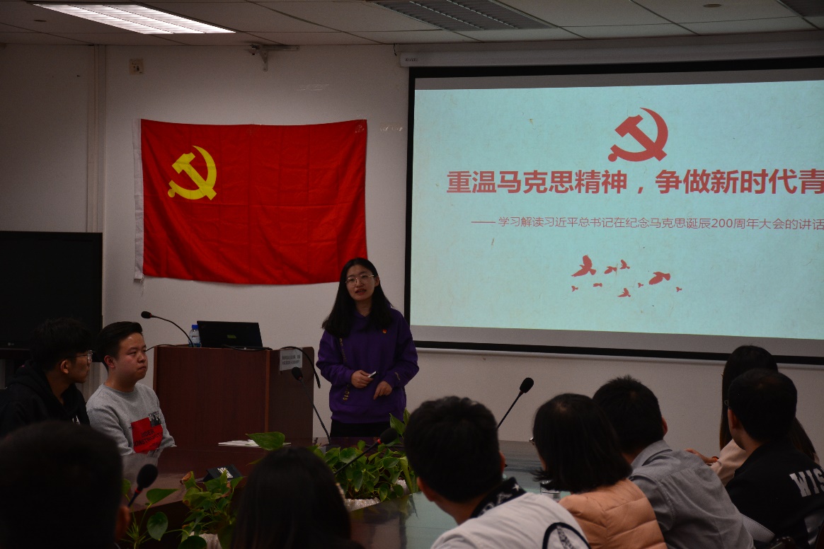 之后,ZY18173党支部邀请了王舒同志为两个支部党员上了一堂生动的党课,党课主题是“重温马克思精神,争做新时代青年”暨学习解读习近平总书记在纪念马克思诞辰200周年大会的讲话,主要从马克思的一生、马克思主义概述、马克思主义在中国、学习马克思主义四个方面讲解。课后,党员同志们深深体会到即使人类社会发生了翻天覆地的变化,但马克思主义所阐述的一般原理整个来说仍然是完全正确的,是具有普适性的。