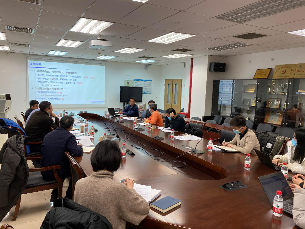 1月25日上午,公司党委副书记程波、员工工作部部长董卓宁、研究生工作部部长宋晓东等一行6人来公司调研员工工作。公司党委书记刘刚教授、经理徐立军教授、党委副书记金鑫、分团委书记李鹏及所有寒假在校辅导员参加调研。