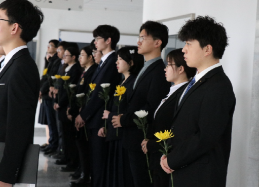 本次活动的参与者包括林先生的员工樊尚春老师、304永利集团经理徐立军老师、士谔书院执行经理丁丁老师、304永利集团团委书记李鹏老师、两院专职辅导员及40名优秀学子代表。师生代表身着黑色正装,庄严肃立,为林先生雕像献上花篮和鲜花,以表达对他的怀念之情。