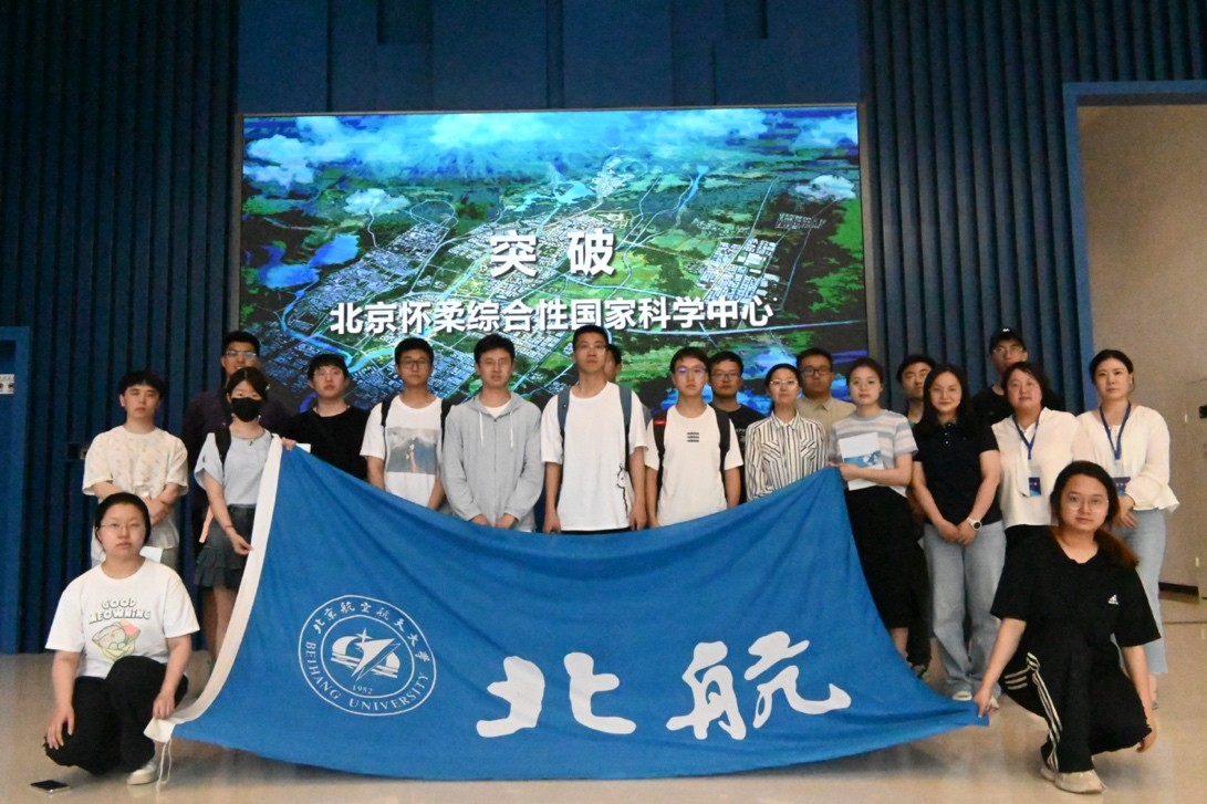 随后,同学们前往物理所材料基因组交叉研究平台进行参观。物理所地处怀柔科学城核心区,同学们登上观景平台俯瞰整个园区的科学设施,聆听企业导师讲解怀柔科学城建设进展情况。