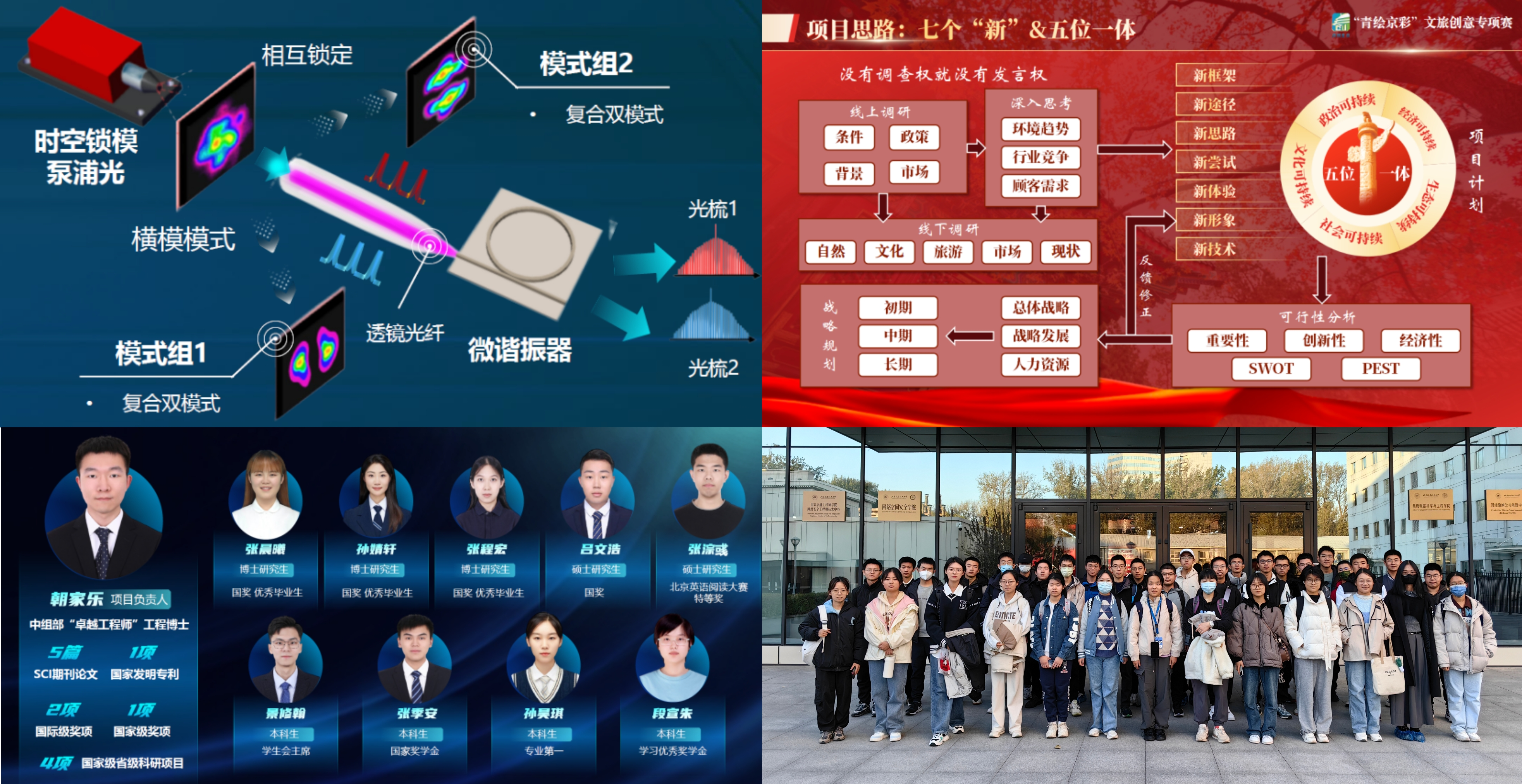 “面向激光雷达应用的模分复用集成光频梳”项目荣获“青智未来”专项赛擂主金奖。该项目提出利用时空锁模脉冲驱动微谐振器产生高功率高相干模分复用双光梳的新方案,即模分复用集成光频梳,为主动遥感、星间测距等科学应用提供新手段。项目团队覆盖仪器公司本硕博各个阶段,形成了深耕科学仪器的研究梯队,其中项目负责人为朝家乐,指导教师为付博老师。