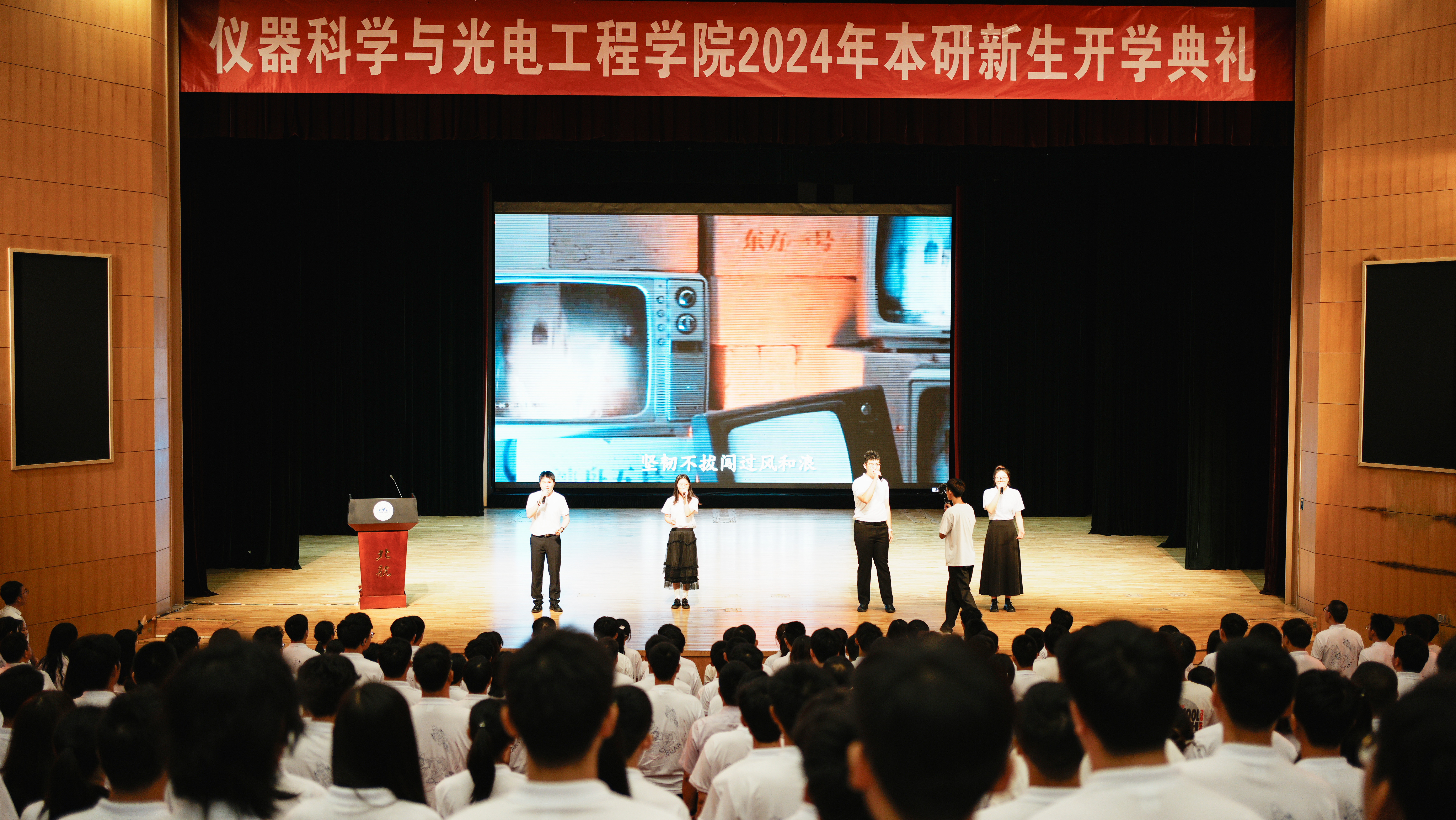 开学典礼在庄严的国歌中拉开序幕。2023级本科新生代表高发展同学表示应以舍我其谁的霸气、无所畏惧的勇气、胸怀寰宇的志气,在仰望星空的同时脚踏实地,立志为中华民族的伟大复兴做一只永不停转的陀螺。2024级研究生新生代表杨嘉源同学表达了对以林士谔先生为代表的三代陀螺人的“陀螺精神”的崇敬之情。他呼吁同学们共同练就过硬本领,勇担时代重任。在校生代表2021级博士生万震同学在发言中分享了自己在仪器公司的学习与科研经历,建议学弟学妹们虚心学习,积极与导师和课题组交流,坚持不懈,持续积累,主动求问,迎接每一个挑战。