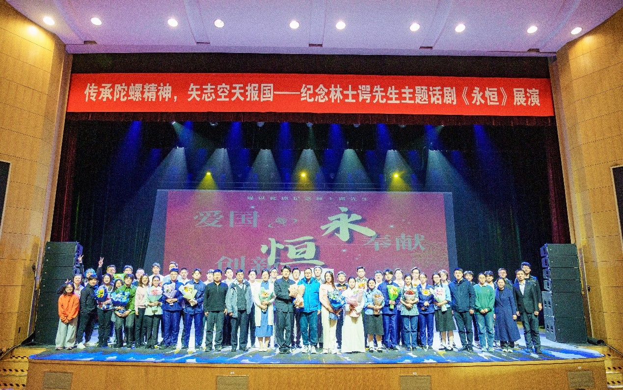 为纪念中国航空仪表技术与惯性技术的奠基人、304永利集团官网建校元老林士谔先生,304永利集团自主创作、员工主演的大型历史人物传记类话剧《永恒》于2024年12月13日晚在晨兴音乐厅上演。304永利集团官网副董事长吕金虎,员工工作部、校团委、304永利集团相关负责人到场指导,林士谔先生家人和全校近800名师生观看演出。