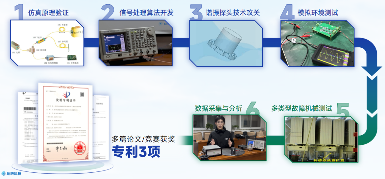 项目提出“光纤声纹传感+多传感器融合+数字孪生”的创新方案:自主研发0-200kHz宽谱光纤声纹传感器,实现全频段抗电磁干扰监测;融合温度、压力等多物理场数据,通过FTA故障树与专家系统精准诊断;构建数字孪生平台,实现三维可视化与智能预警。”