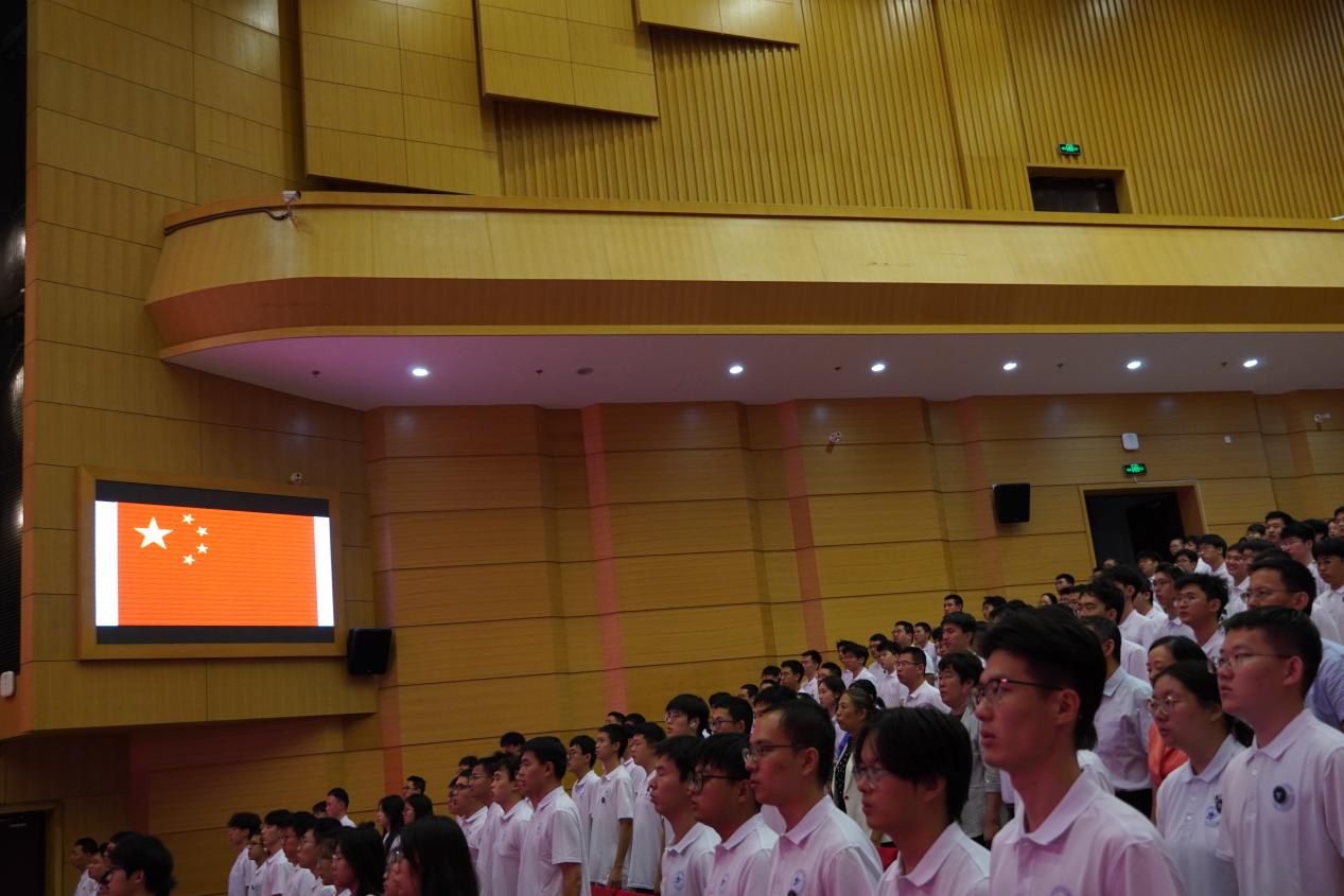 开学典礼在庄严的国歌中拉开序幕。