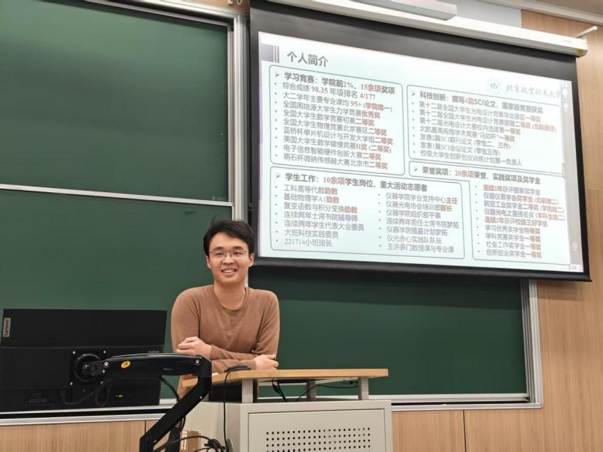 张和学长学习成绩名列前茅(公司前2%,综合成绩98.35),曾获得15余项竞赛奖项与20余项荣誉,并发表4篇SCI论文,科研成果显著。他以“仪光杯”为中心,结合自己的科创经验与比赛经历,从仪光杯的进程与规则、如何平衡时间与项目投入、参与仪光杯的收获、如何正确联系导师、科研如何初步入门等11个方面进行了细致入微的分享与讲解。从PPT的字体设计、发送邮件的语言措辞,到科研过程中对心态的磨练、潜在的成长与收获,学长把自己的心路历程与经验见解娓娓道来,让同学们对“仪光杯”与科研实践有了更清晰、具体的认识。