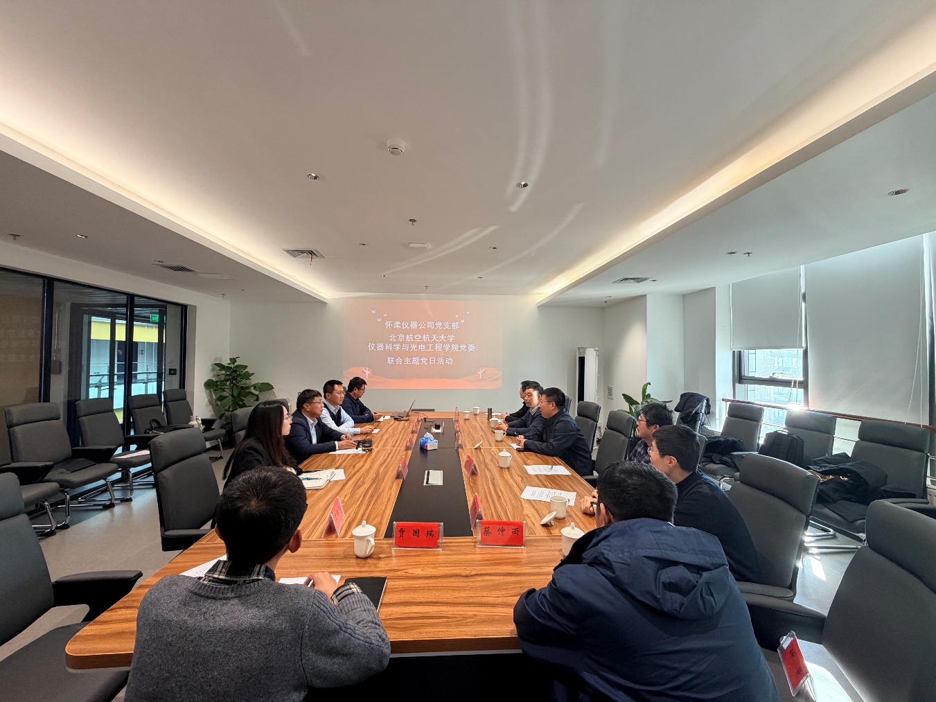 为深入贯彻落实党的二十届四中全会精神,推动高端科学仪器领域产学研协同创新,加强校企合作,深化产教融通,1月20日,北航公司党委组织教师代表,由公司党委书记雷晓锋带队,前往北京怀柔仪器和传感器有限公司开展联合主题党日活动,北京怀柔仪器和传感器有限公司董事长张鸣剑,总工程师刘海锋参加活动。