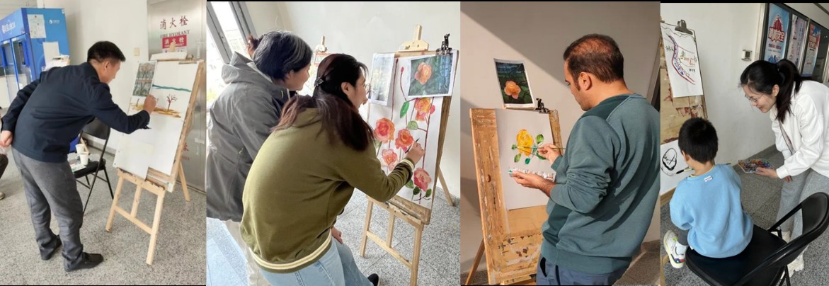 路过的老师们也积极地参与进来,专注地在纸面上留下一颗小树,或盛放的鲜花,或翠绿欲滴的枝叶。本次活动也吸引到了路过的职工和小朋友。