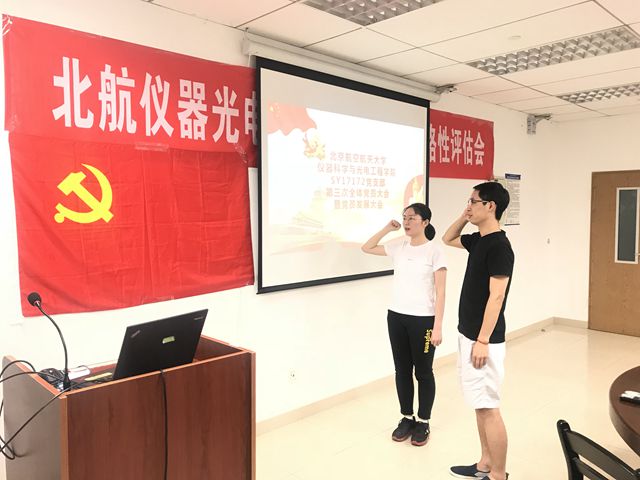 大会第三项,两位同志面对党旗宣誓,表达自己对党的忠诚。相信他们的加入能够扩大组织的影响力,给广大同学带来更多正能量。