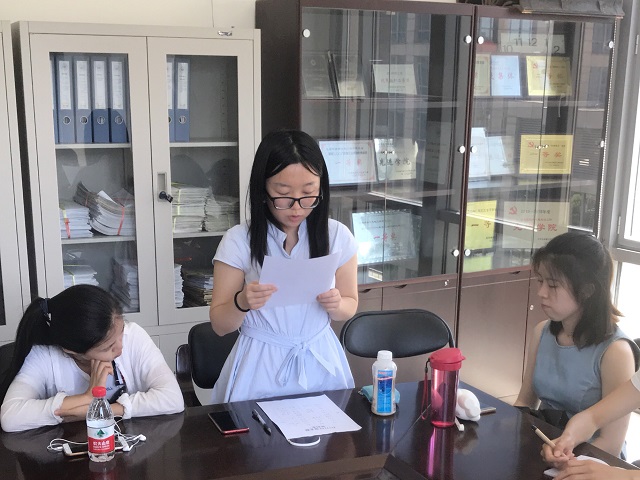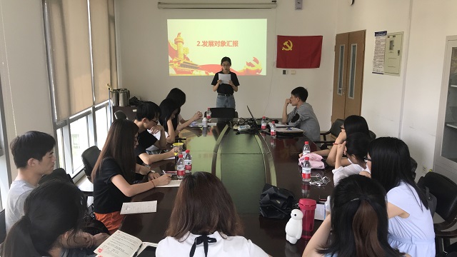 大会第二项,由段昊雨宣读入党志愿书,她首先简述了中国共产党的历史发展进程,表达了自己对成为共产党员的热切向往和决心。然后她向党组织从思想,学习,工作,生活四个方面做了详细汇报,并最终总结了自身的不足与未来将要努力的方向。