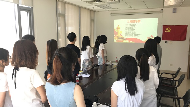 大会第一项,全体支部成员在王飞虎带领下唱国际歌,伴随着激昂又悠扬的旋律,大家心中都充满了努力奋斗的激情。