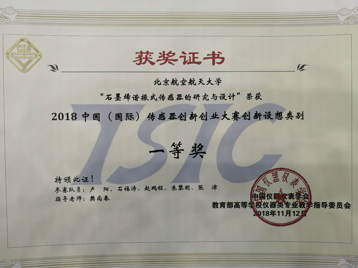 第四届中国(国际)传感器创新创业大赛(以下简称“大赛”)总决赛于20181111日在河南工业大学圆满结束,颁奖仪式于20181112日在郑州国际会展中心隆重举行。来自304永利集团代表队的作品“石墨烯谐振式传感器研究进展”荣获大赛“创新设想类”作品一等奖。